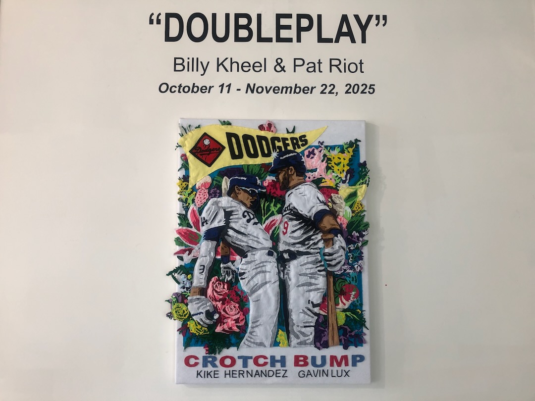 It’s the first day of the World Series and while the Dodgers are in Toronto to face the Blue Jays, fans in L.A. can check out Dodger art just downhill from the stadium. Doubleplay, a joint show from L.A.-based artists Billy Kheel and Pat Riot, opened earlier this month at Eastern Projects in Chinatown and it’s on view at the gallery through November 22.